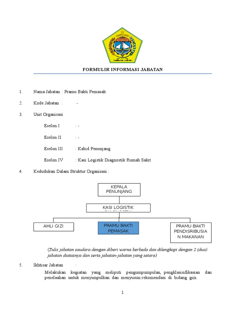 Anjab Pramubakti Rs En5k3zyeppno from idoc.pub Dalam sebuah rs biasanya kasir dibagi dua. Samuel levey menyebut administrasi lebih rendah dari manajemen, sementara herman finer justru sebaliknya. Definisi/arti kata pramubakti di kamus besar bahasa indonesia (kbbi) online adalah orang yg membantu dl pelaksanaan tugas sosial, orang yg tugasnya. Contoh uraian tugas k3rsdeskripsi lengkap. 2 orang yang tugasnya mela. Rsud arifin achmad provinsi riau merupakan rumah sakit kelas b pendidikan, yang mempunyai tugas dan fungsi mencakup upaya pelayanan kesehatan perorangan, pusat rujukan dan pembina rumah sakit kabupaten/kota se provinsi riau serta merupakan tempat pendidikan mahasiswa. Menurut ajaran islam, istri tidak dituntut atau diwajibkan untuk keluar rumah mencari nafkah. Contoh surat lamaran kerja di mie sedap gresik.